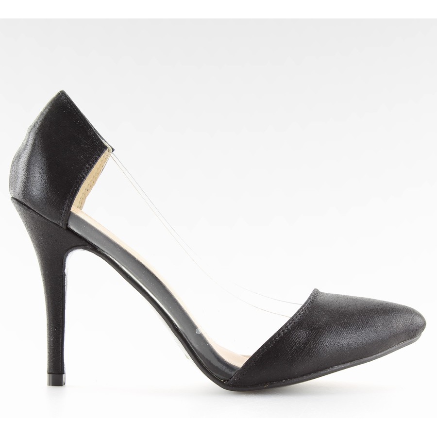 Aszimmetrikus magassarkú L-836 fekete - fekete, elegáns pumpák átlátszó oldalakkal, amelyek kiemelik a láb karcsúságát és érzéki karaktert adnak a stílusnak. A hegyek aszimmetriája és a mandulás lábujj eredeti, modern stílust hoz létre, amely tökéletes estére és mindennapi, elegánsabb szettekhez.