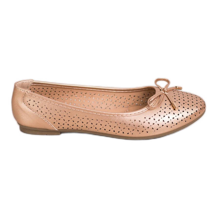 Részletek: SHELOVET Áttört balerina öko bőrrel aranysárga