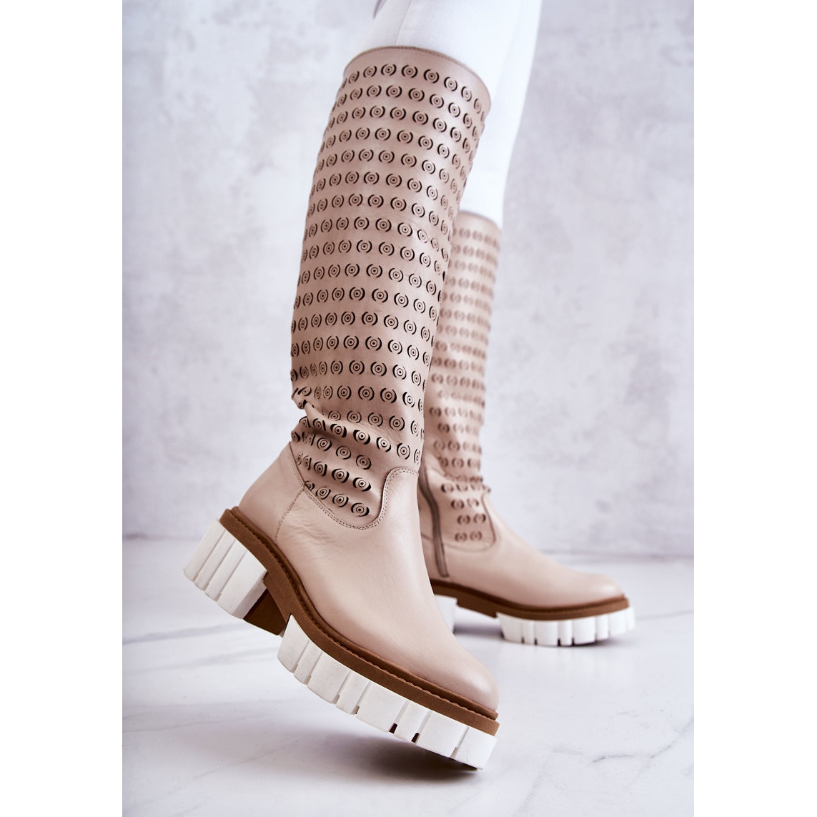 Részletek: Áttört bőrcsizma bézs Lativia cipzárral