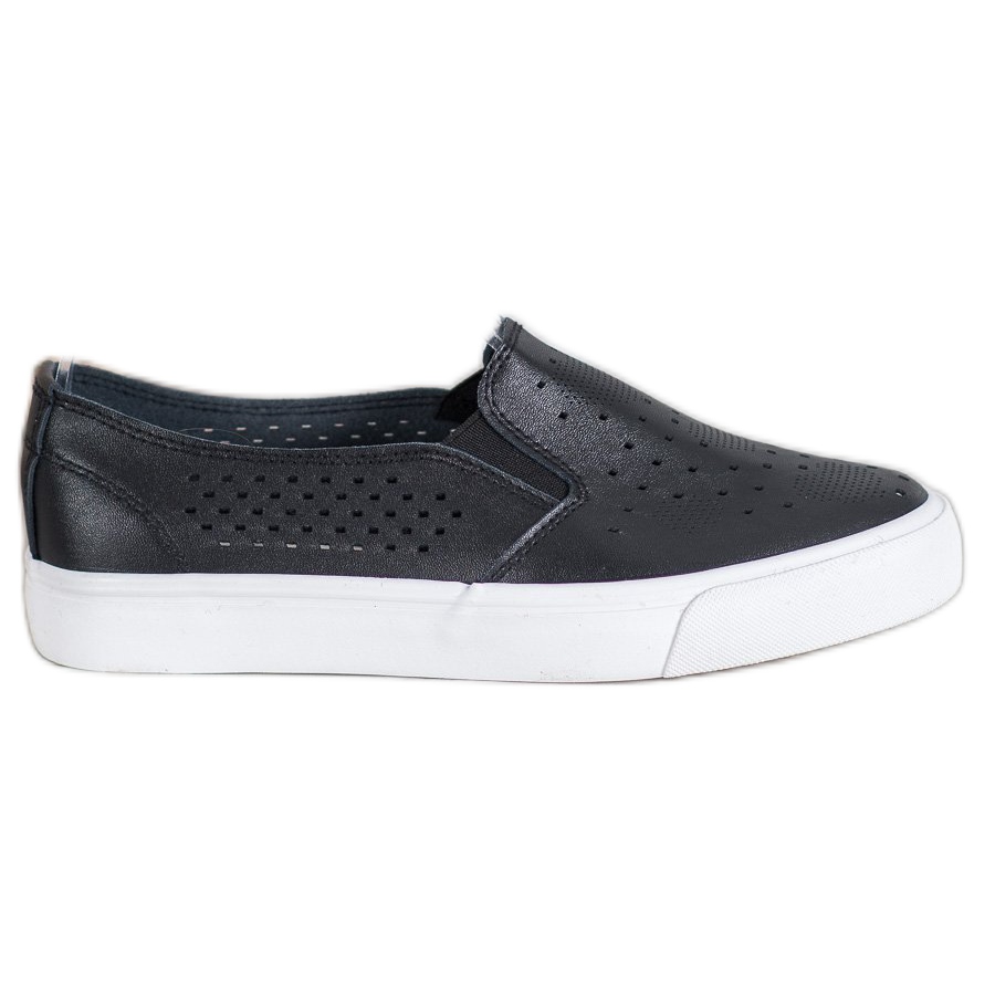 A J. Star női fekete tornacipő tökéletes választás azoknak a nőknek, akik értékelik a kényelmet és a stílust. Az áttört felsőrésznek köszönhetően a cipő kiváló légáteresztést biztosít, így ideális választás a meleg napokra. Ez a modell felcsúsztatható, oldalain praktikus gumibetétekkel van ellátva, ami megkönnyíti a fel- és levételt.