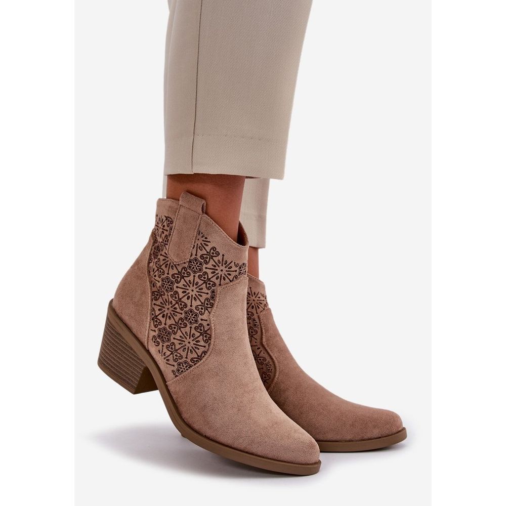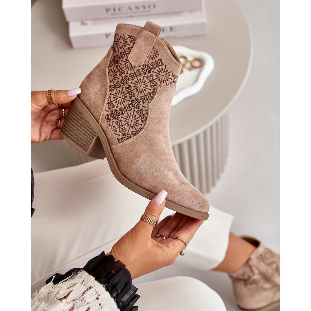 Részletek: Áttört Cowboy csizma cipzárral Eco Suede bézs S.Barski HY42-944