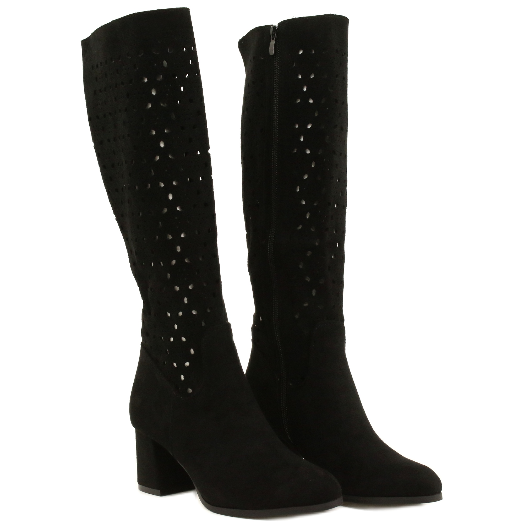 Fedezze fel az eleganciát és a kényelmet az M.Daszyński márka áttört magas sarkú csizmáival - SA156-10 modell, klasszikus fekete színben. Tökéletes a tavaszi és őszi szezonban, ez a gyönyörű csizma ötvözi a modern dizájnt a funkcionalitással.