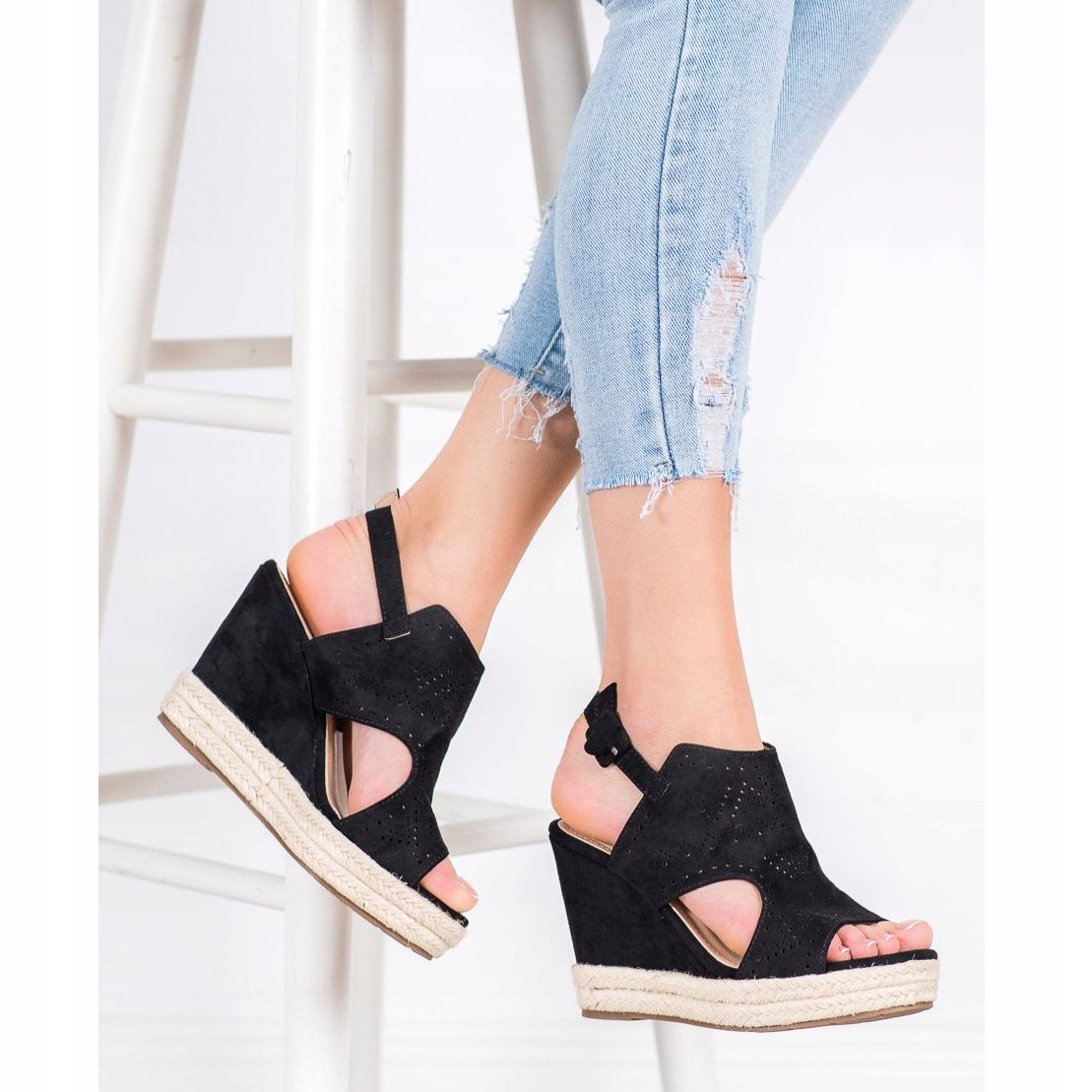A fekete SHELOVET áttört ékek tökéletes választás azoknak a nőknek, akik a stílust a kényelemmel szeretnék kombinálni a nyári stílusban. Ez a lábbeli nemcsak elegáns, klasszikus szabásával nyűgöz le, hanem áttört mintájával is, amely biztosítja a láb megfelelő szellőzését még a legmelegebb napokon is.
