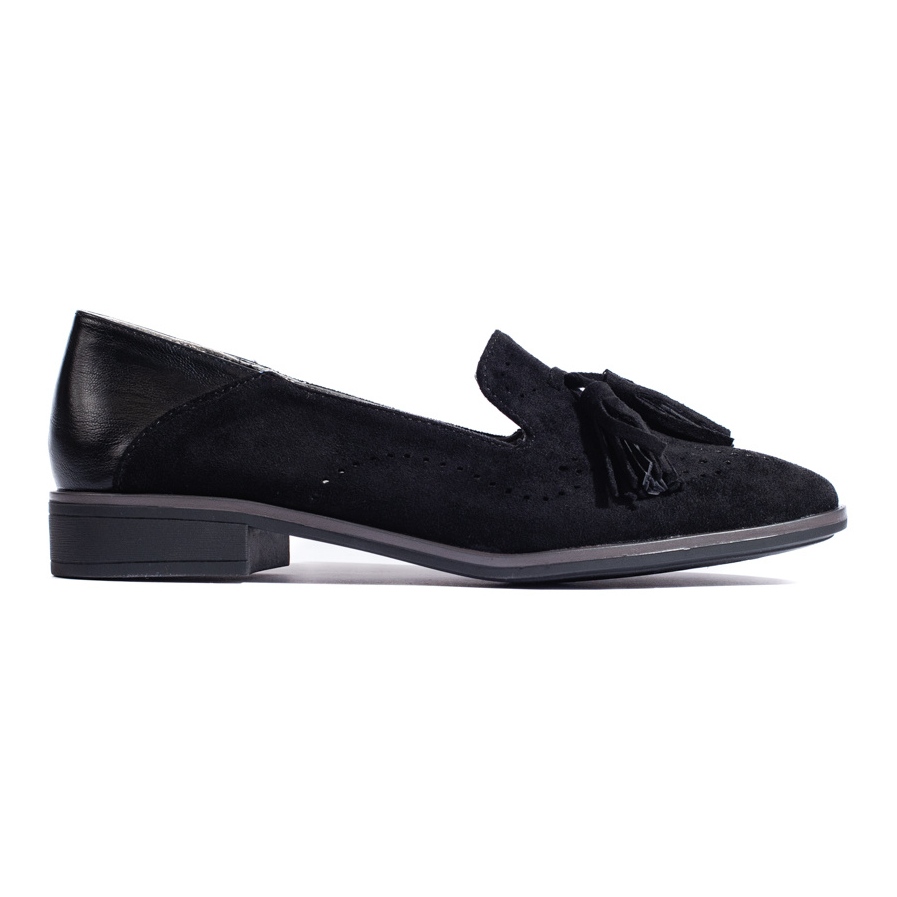 Részletek: Áttört fekete velúr Daszyński mokaszinok