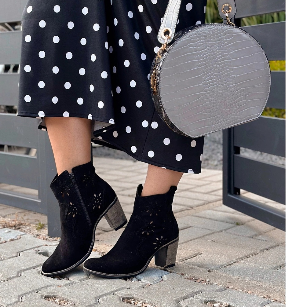 Egyidejűleg elegáns és praktikus - ezek a Lena női csizma a lengyel gyártó Olivier -től. A természetes bőr (NUBUK) belsejében és kívülről készülve biztosítsa a kényelmet és a kellemes felületet. A felső felsők nyitott mintája növeli a könnyedséget, és lehetővé teszi a lábad, hogy lélegezzen, amelynek köszönhetően a csizma is nagyszerű harisnyanadrág nélkül. A modell eléri a bokát (kb. 15 cm), és a teljes hosszúságú gyakorlati zár megkönnyíti a felhelyezést.