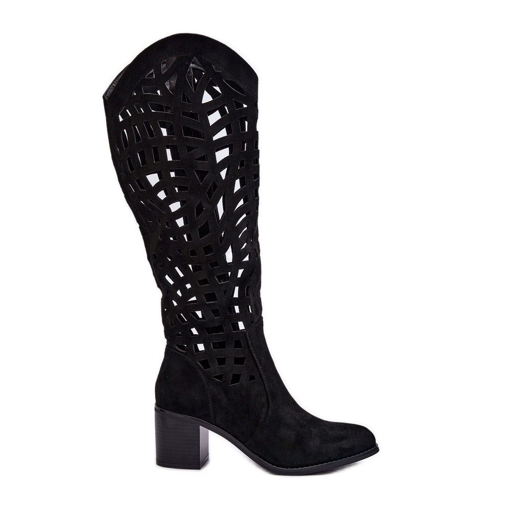 Részletek: Áttört magassarkú csizma Fekete Pinkema