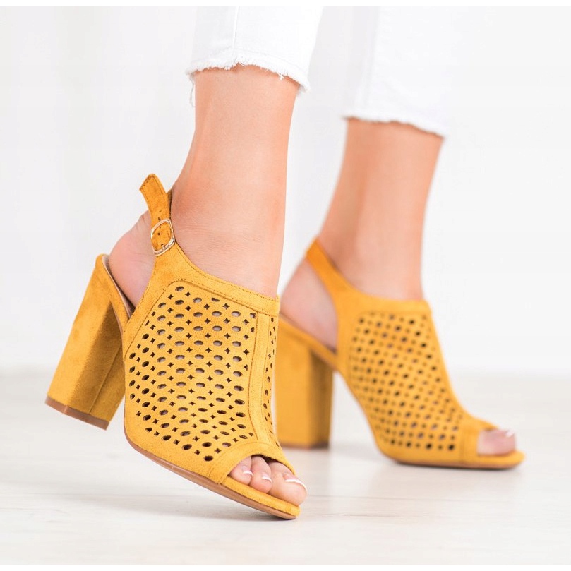 Fedezze fel a Weide márka áttört magas sarkú szandáljainak rendkívüli varázsát, egyedi mustár árnyalatban. Ezek az elegáns cipők nemcsak vonzzák a figyelmet, hanem tökéletesen illeszkednek a legújabb divatirányzatokhoz is. Különféle alkalmakra tökéletesek, esti bulikon és mindennapi stílusban egyaránt jól használhatók.