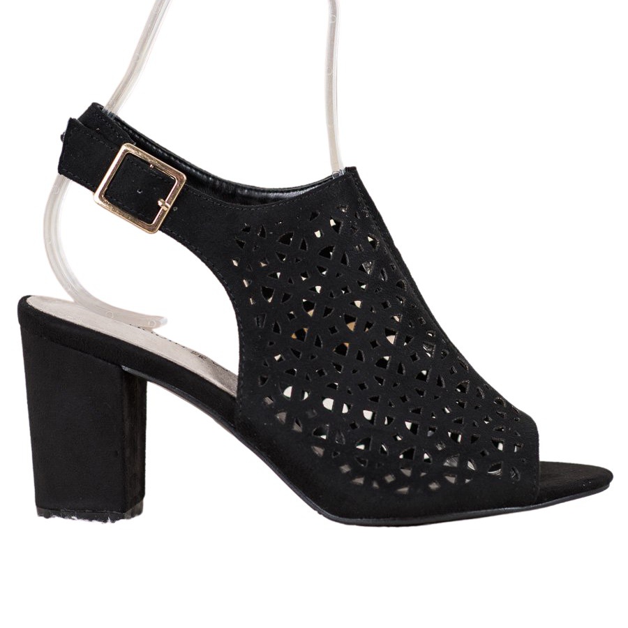 A szandálokat áttört felület jellemzi, amely nemcsak vonzza a tekintetet, hanem megfelelő szellőzést is biztosít a lábnak. A 8,5 cm-es tömbsaroknak köszönhetően minden lépése stabil, és táncban és szórakozásban telve élvezheti az éjszakát. A csatos rögzítés lehetővé teszi a könnyű beállítást a lábfejhez, ami növeli a viselési kényelmet.