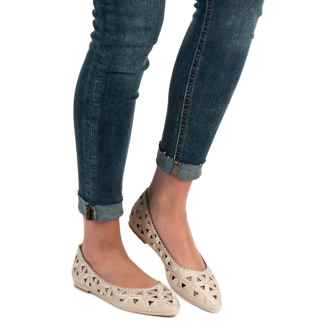 A VICES bézs színű áttört balerinacipő tökéletes választás minden nő számára, aki ötvözni szeretné a kényelmet az eleganciával. Ezek a stílusos cipők finom, áttört mintájával tűnnek ki, amely könnyedséget és rendkívüli varázst kölcsönöz nekik. Finom, fényes felületüknek köszönhetően ezek a balettlakások tökéletesen passzolnak a hétköznapi, hétköznapi stílusokhoz, egy kis lányos karaktert adva hozzájuk.