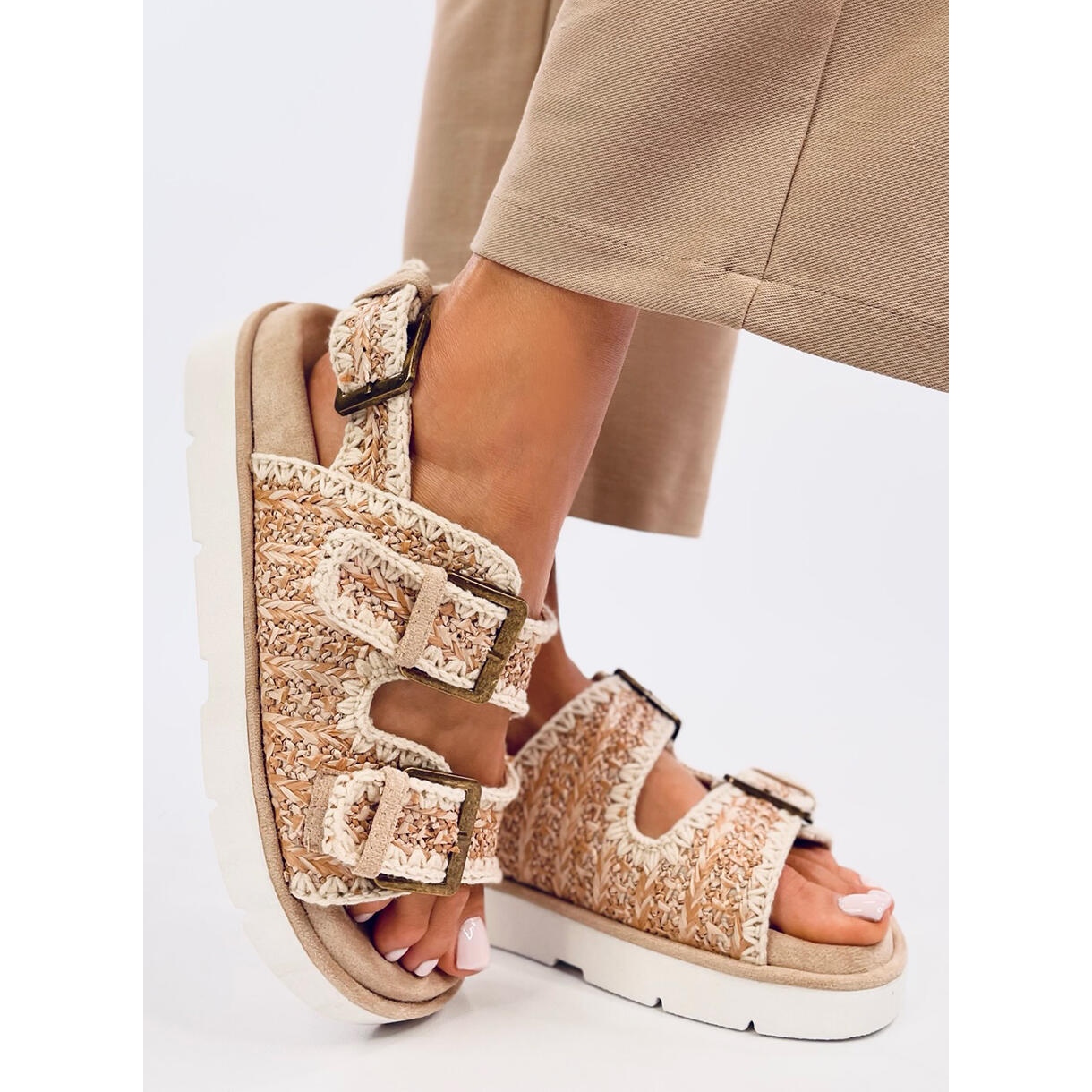 A khaki színű Badey platformszandál tökéletes választás azoknak a nőknek, akik a kényelmet a divatos megjelenéssel szeretnék kombinálni. A magas platformtalpnak köszönhetően ezek a szandálok néhány centiméterrel megnövelik a magasságot, miközben kényelmet nyújtanak a mindennapi séták során. Egyedi mintájuk felkelti a figyelmet, így tökéletes kiegészítője bármilyen nyári stílusnak!