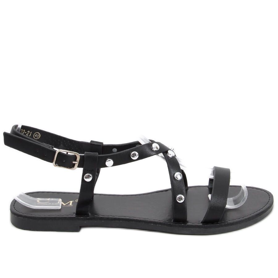 Fedezze fel a Badra Black női szandálok egyedi stílusát és kényelmét. Ezek az elegáns fekete szandálok lapos talppal tűnnek ki, így tökéletes választás a mindennapi viselethez. A pántokon és a talpon található ikonikus szegecseknek köszönhetően egyedi, rockos kiejtést kapsz, amely felpezsdíti bármilyen stílusodat.