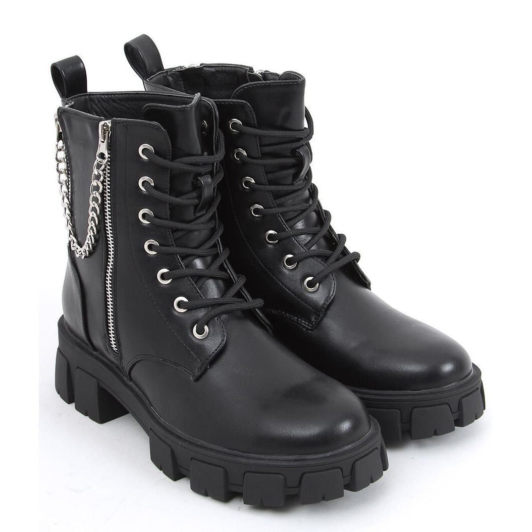 A kiváló minőségű ökológiai bőrből készült csizmák minimalista, sima dizájnjukkal gyönyörködnek, amely kiemeli modern karakterét. A szemet gyönyörködtető lánc divatos akcentus, szemet gyönyörködtető és egy kis varázst ad az egész megjelenéshez. További kényelemről gondoskodik a teljesen fűzős kialakítás és kívül egy praktikus cipzár, amely megkönnyíti a cipő fel- és levételét.
