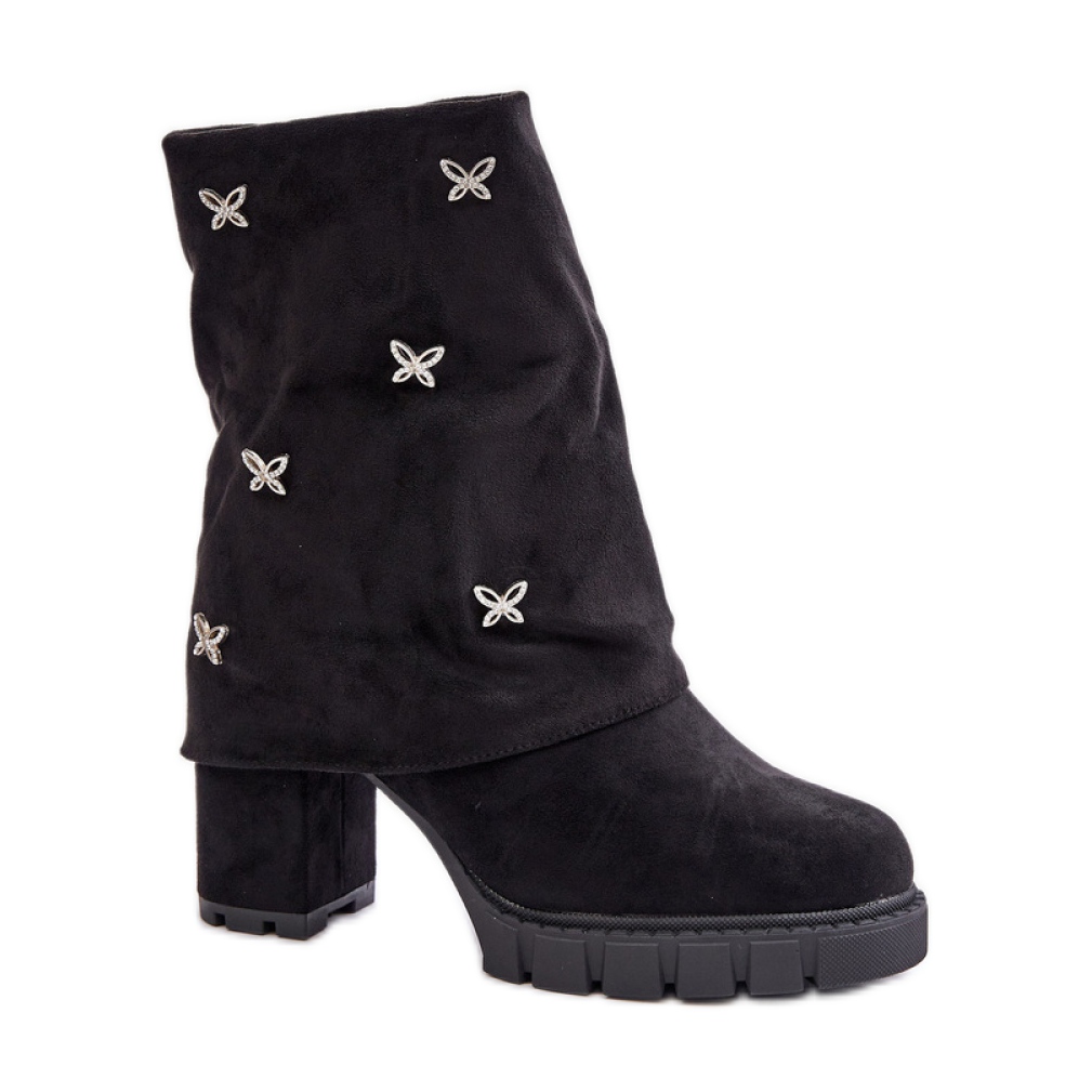 Ezeknek a csizmáknak négyzet alakú orra van, ami jelenlegi divat trend, és egy további elem cirkon formájában egyedi karaktert ad nekik. Univerzális színüknek köszönhetően tökéletesen belekeverednek a különböző stílusokkal - az alkalmi és az elegáns és az elegáns, mind a mindennapi, mind a formálisabb körülmények között.