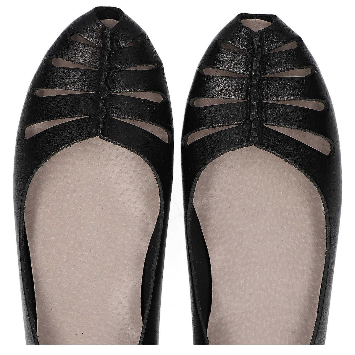 A balett lakások lapos sarka mindössze 1 cm magas, így ideális megoldás azoknak a nőknek, akik az elegancia feláldozása nélkül értékelik a kényelmet. Mandula alakú orrrészük finom nőiességet kölcsönöz, az áttört részletek pedig könnyűvé és eredetivé teszik ezt a modellt.