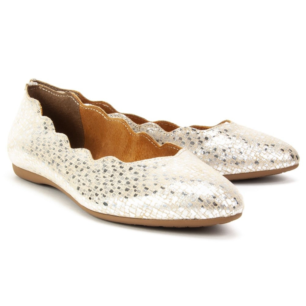 A H31-319 modellt finom, mandula alakú orr jellemzi, a 0,5 cm magas platform és a 0,6 kg-os súly pedig rendkívül kényelmes viseletet biztosít a balerinacipőknek. Az arany, fémes szín ragyogást ad nekik, így remek kiegészítője lehet bármilyen stílusnak – legyen az alkalmi és elegánsabb is.