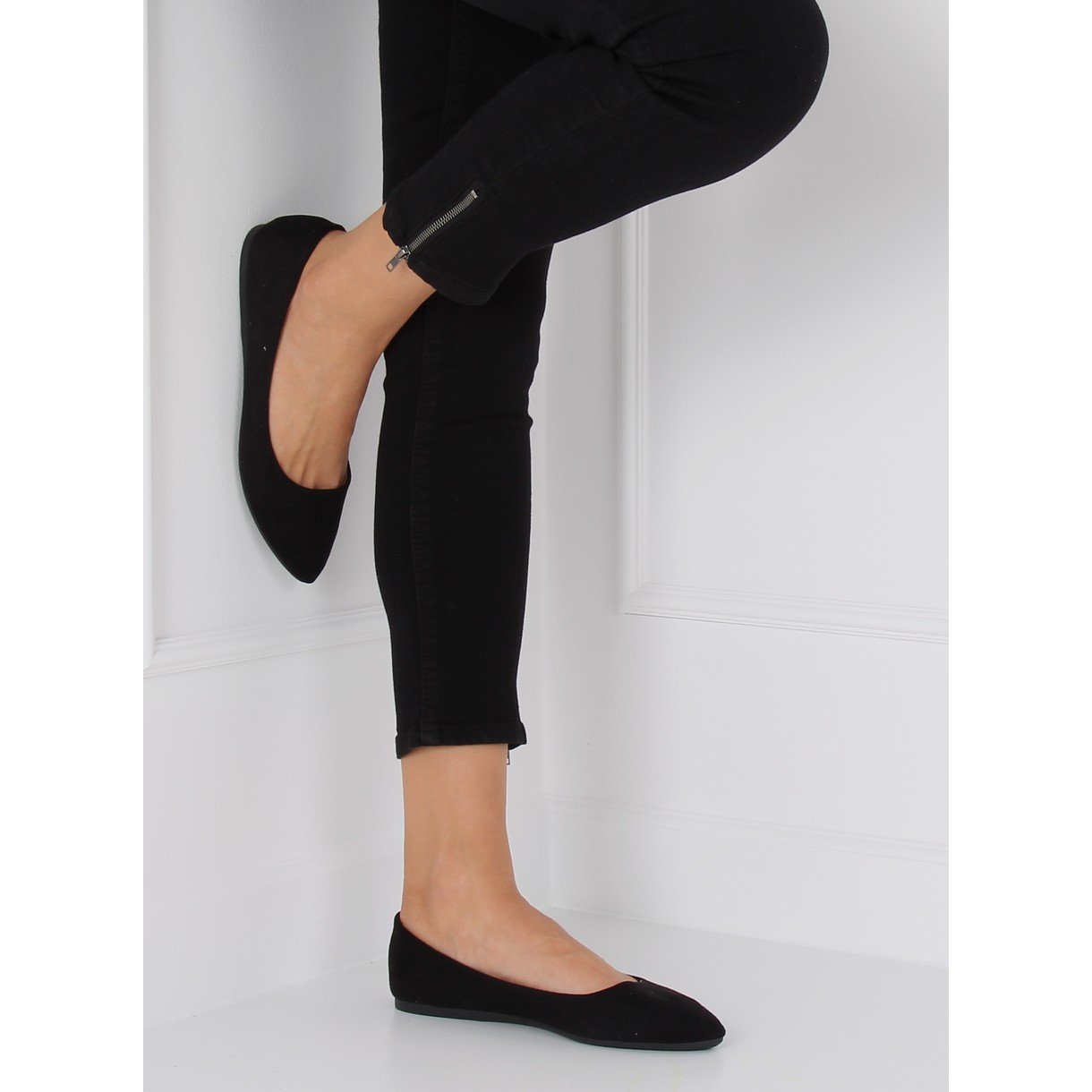 Fedezze fel az elegancia klasszikusait a WD39P fekete mandula orrú balettlapokkal! Ezek a stílusos női cipők tökéletes választás a kényelem és a divatos akcentusok szerelmeseinek a mindennapi stílusban. Enyhén elkeskenyedő, ökológiai velúrból készült orruk jellegzetes elegáns megjelenést kölcsönöz nekik, amely tökéletes lesz az irodában és a baráti találkozókon egyaránt.