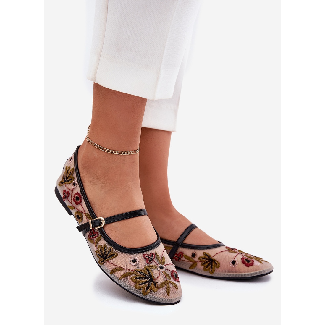 A fekete balerinák lapos sarkúak 1 cm magas, ami még hosszú nap folyamán is kényelmessé teszi őket. Az ökológiai bőrből készült betét biztosítja a viselet kényelmét, és a tartós műanyag talp garantálja a hosszú távú működést. A rögzítés egy csat formájában hozzáadja a stílust, és megkönnyíti a felhelyezést.