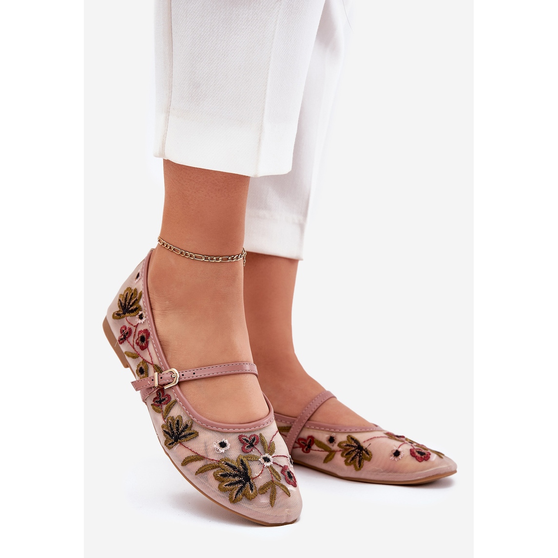 Részletek: Ballerinák hímzéssel és rózsaszín övvel