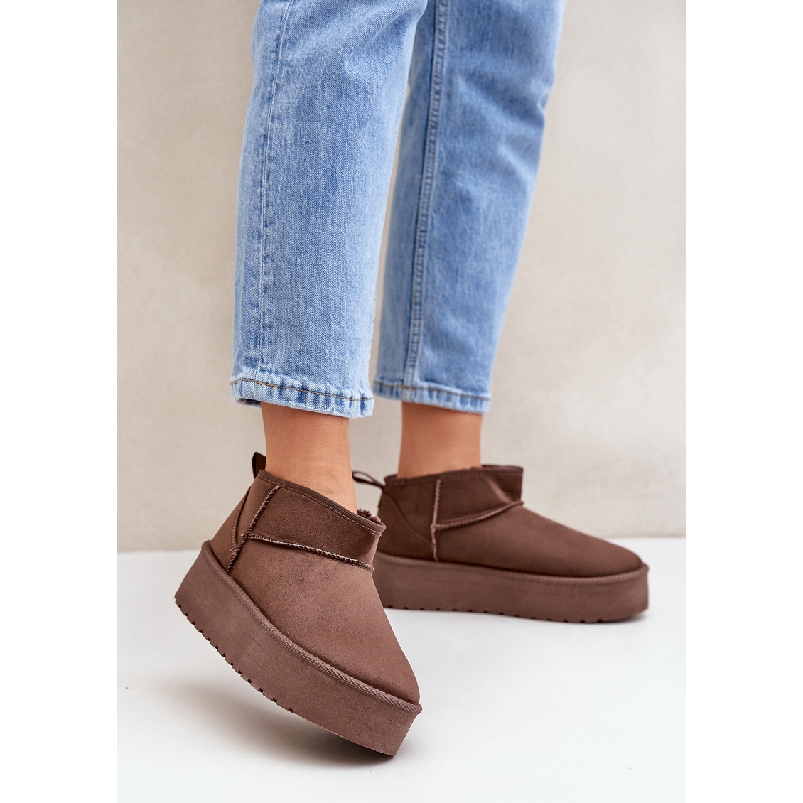 Fedezze fel az egyedi kényelmet és stílust az alacsony hócsizmának köszönhetően a platformon, barna árnyalatban. Ezek a klasszikus hócsizmák a tökéletes választás a hideg napokhoz, kombinálva a divatos formatervezést a funkcionalitással. Kiváló minőségű öko velúrból készül, és nemcsak elegáns megjelenést kínál, hanem a szükséges tartósságot is.