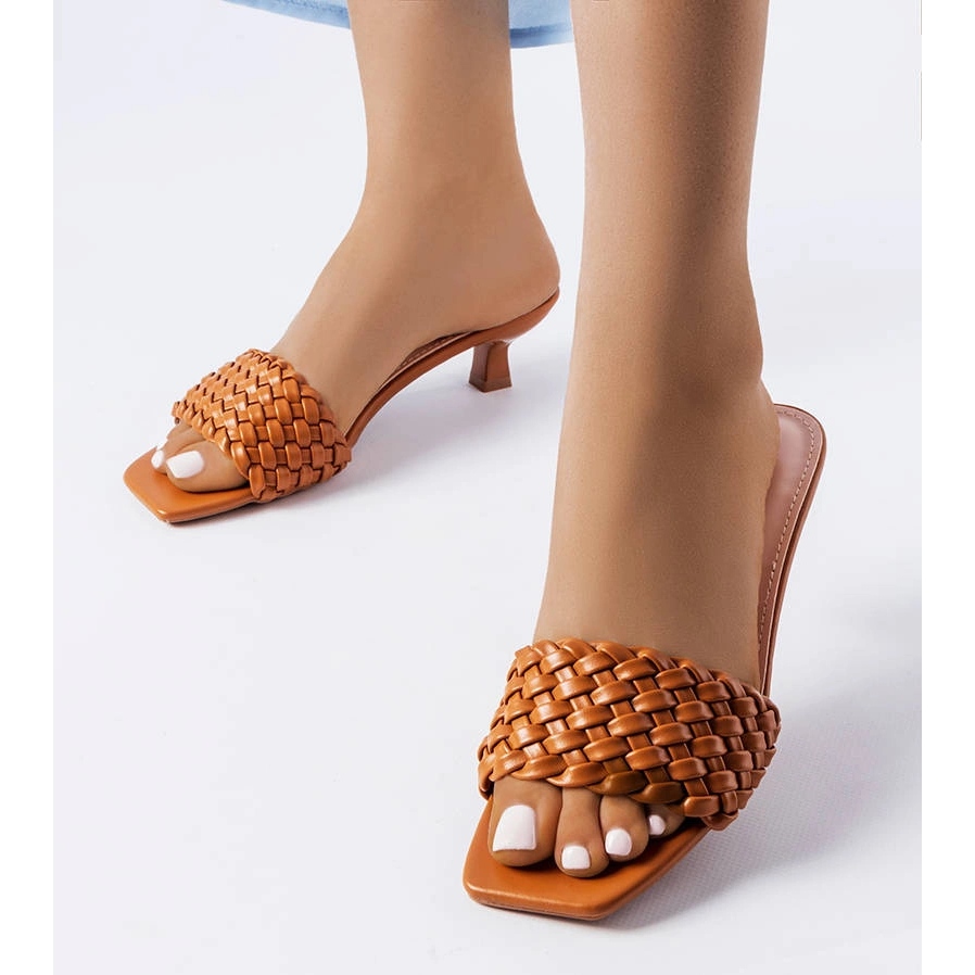 Bronz alacsony, káposzta Bourbank flip -flopok -stílusos és kényelmes kiegészítők a nyári stilizációkhoz. Csúsztatott papucs nyitott, négyzet alakú lábujjjal és széles övvel, fonás formájában, kiváló minőségű ökológiai bőrből. Az alacsony, stabil tű könnyűséget és nőiességet ad, miközben egész nap biztosítja a kényelmet.