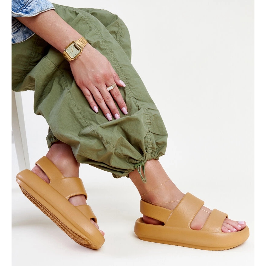 A barna szín miatt a szandálok könnyen alkalmazkodnak sok nyári stilizációhoz - mind a levegős ruhákhoz, mind a rövidnadrághoz vagy a nyári nadrághoz. A habbetét anyaga megfelelő párnázást biztosít, ami azt jelenti, hogy egész nap élvezheti őket, anélkül, hogy kellemetlenséget érezne.