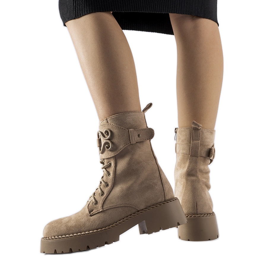 Tetszik a gyakorlati és divatos cipő? Ezek a khaki árnyalatú női munkavállalók kombinálják a kényelmet a városi karakterrel. Ökológiai velúrból készültek, szigetelt és a boka felé nyúlnak, és nagyszerűek az őszi téli szezonban. A kerek orr megadja a lábadnak a megfelelő teret, és 5 cm -es platform meghosszabbítja az ábrát, és bizalmat ad a mindennapi kijárat során.