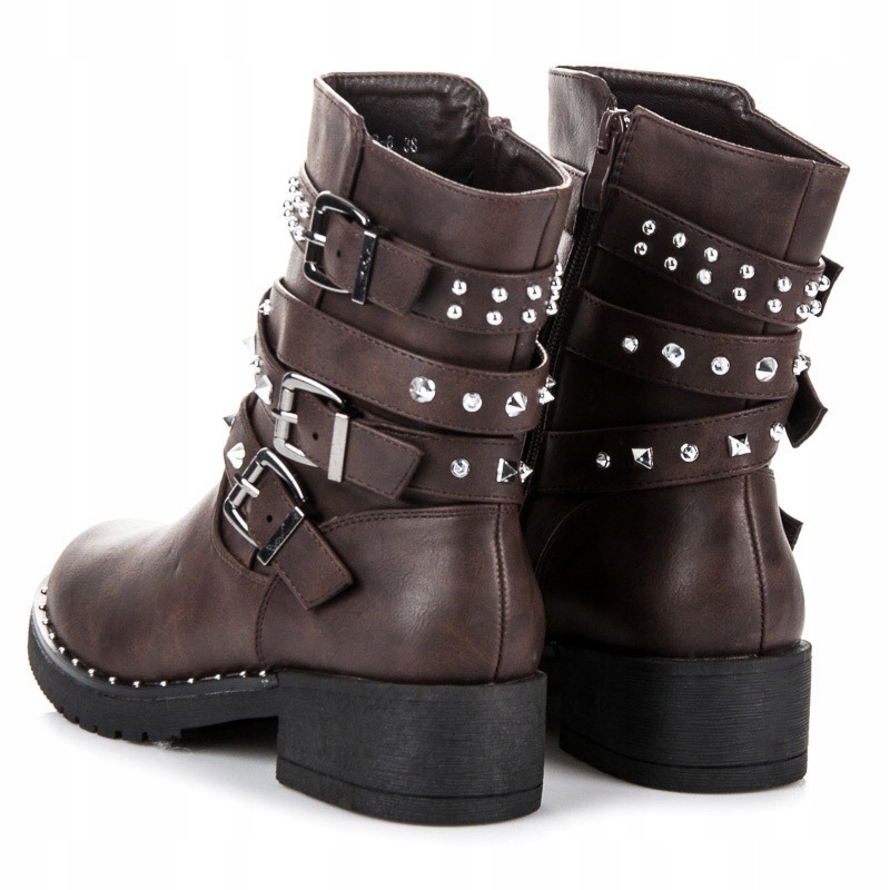 A neves Cink Me gyártó szegecses barna munkáscsizmáit kínáljuk - tökéletes lábbeli azoknak a nőknek, akik egyedi stílusukat lezser, rock stílusban szeretnék kifejezni. Ez a divatos bokacsizma kiváló minőségű ökológiai bőrből készült, amely nemcsak a tartósságot, hanem a viselési kényelmet is biztosítja.