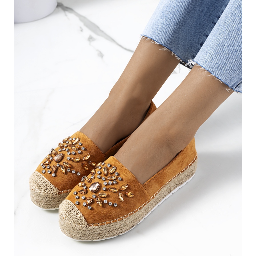 Részletek: Barna espadrillák Leer cirkóniával sárga