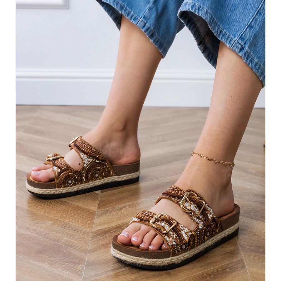 Részletek: Barna etnikai flip flopok bilincsekkel csíkokon