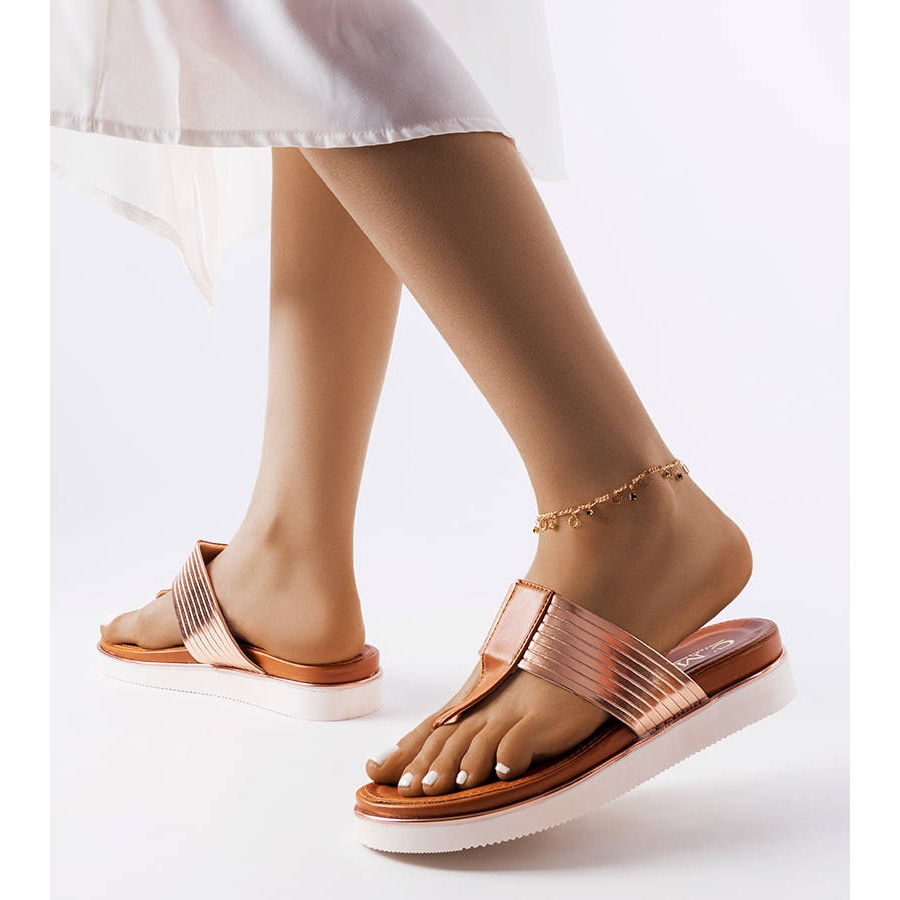 A papucsok színei a barna és az arany árnyalatait ötvözik, így könnyen illeszthetők a különböző stílusokhoz. Az orr hiánya ellenére megőrizték elegáns karakterüket, tökéletesek strandoláshoz és városi sétákhoz egyaránt.