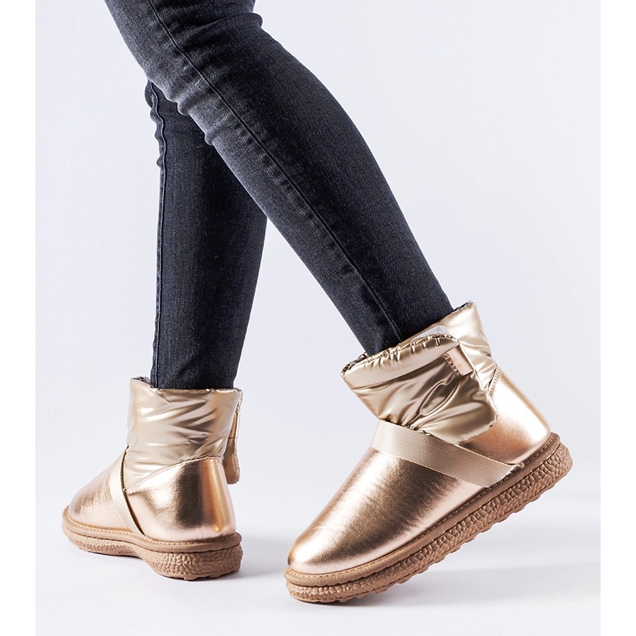 Az elegáns, csillogó delaune hócsizma pezsgőben a divatos megjelenés és a praktikusság tökéletes kombinációja. Rövid bokacipő (17 cm magasság), lekerekített orrral, hozzáadva a nőies varázst, és 3 cm -es platform biztosítja az enyhe emelést és a modern karaktert. A fémes felület finom pompát ad nekik, köszönhetően, amelyek mind a mindennapi és a stílusosabb téli stílusban nagyszerűek.