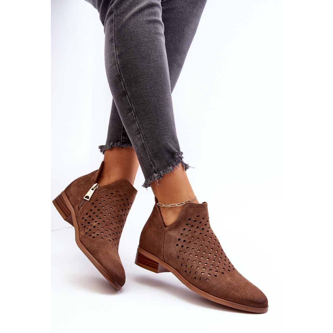 Fedezze fel a Vinceza egyedi Janetris női alacsony csizmáját, amely bármilyen alkalomra tökéletes kiegészítője lesz ruhatárának. Ezek a kiváló minőségű öko-velúrból készült csizmák áttört dizájnjukkal rabul ejtik, ami finom, elegáns akcentust kölcsönöz a stílusnak. Barna színüknek köszönhetően könnyen kombinálhatók különféle ruhákkal – a hétköznapoktól a hivatalosabbakig.