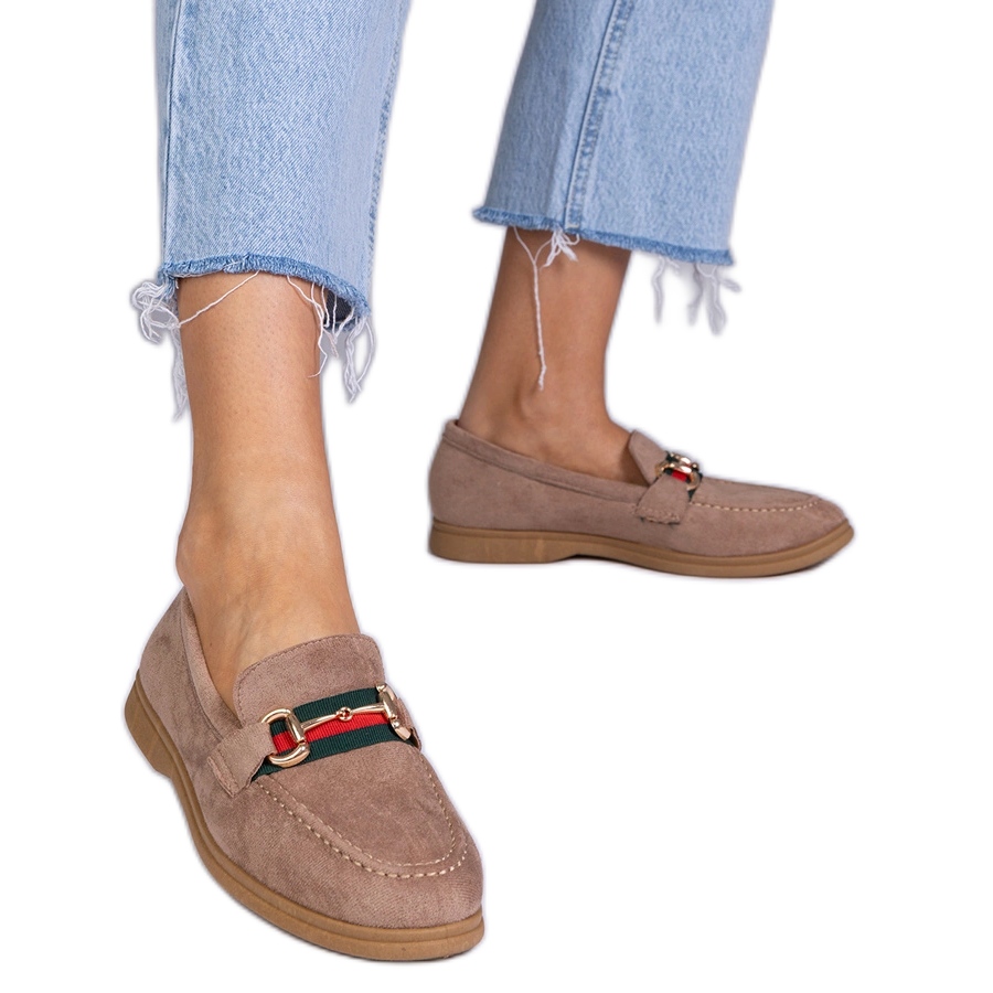 A mokaszinok lapos sarkúak, 2 cm magasságúak, ami biztosítja a kényelmet, hogy hosszú órákig is viseljen. A kerek orr teszi őket tökéletesen alkalmazkodni a különböző stílusokhoz, az alkalmi és az elegánsabbá. A telepítés és az eltávolítás beillesztésének köszönhetően gyors és egyszerűvé válik, ami mindennapi használatban rendkívül praktikus. A barna műanyag talp garantálja a megfelelő tapadást, ami tökéletes választást jelent a különféle felületekhez.