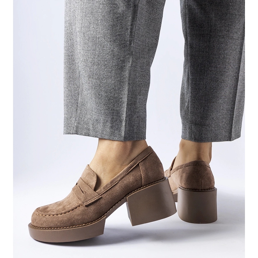 Elegáns és kényelmes taupe (barna) női cipők, tökéletes a nyári szezonra. A klasszikus vágás és a gyakorlati megoldások és a csúszó szerkezet, a kerek lábujj és a sarok közepes magasságának kombinációja, a blokk típusa egész nap biztosítja a kényelmet és a divatos, univerzális megjelenést.