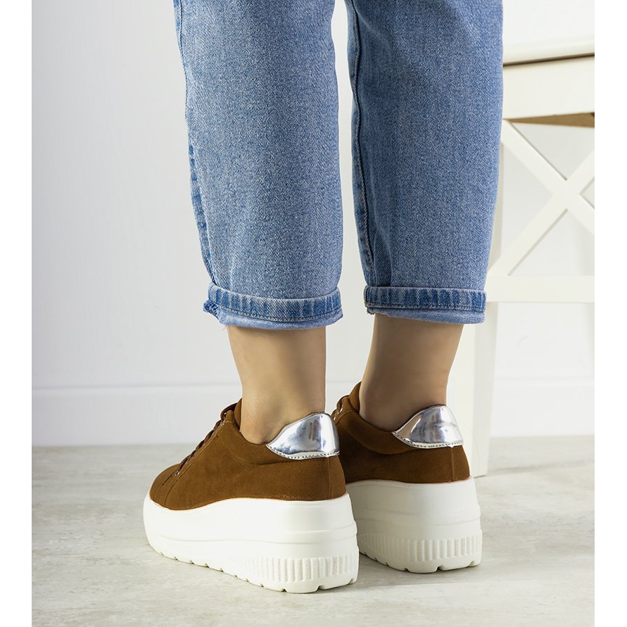 Ezek barna Rapter sportcipők magas talppal, amelyek tökéletesen kiegészítik divatstílusait. Tökéletes azoknak, akik értékelik a kényelmet és a modern dizájnt egyaránt. A Rapter modellt a kiváló minőségű műanyagból készült könnyű talp jellemzi, ami azt jelenti, hogy egész nap viselheted anélkül, hogy fáradtság lenne.
