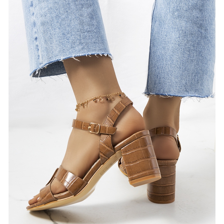 A Brown Haiden magas sarkú szandál tökéletes választás a nyári napokra, és minden stílust tökéletesen kiegészít. A kiváló minőségű ökológiai bőr használatának köszönhetően mind a talpbetétben, mind a felsőrészben a lábbeli rendkívüli viselési kényelmet biztosít egész nap. Egy kis, 7 cm magas oszlop tökéletesen kiemeli az alakot, eleganciát és nőiességet kölcsönözve minden lépésnek.
