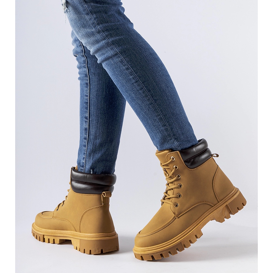 Az elegáns és praktikus Conroe munkavállalók tökéletes választás a hűvösebb napokhoz. Teve -ökológiai bőrből készült, matt kivitelben és belsejében egyesítik a divatos megjelenést a vigasztalással. Magas boka, fűzve és 4 cm -es platformon van beállítva - adja meg a figurát, és a lekerekített orr hangsúlyozza a modern stílust.