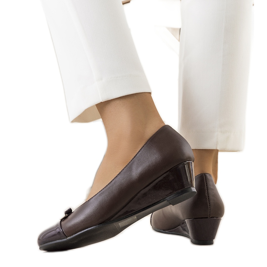 A barna Cavalcanti ékszivattyúk tökéletes választás a kényelmet és stílust értékelő nők számára. A kiváló minőségű ökológiai bőrből készült szivattyúk kivételesen elegánsnak tűnnek a lábujj lakkfelületének köszönhetően. Klasszikus dizájnjuk tökéletesen illeszkedik a hétköznapi stílusokba, barna színe pedig különféle ruhákhoz passzol.