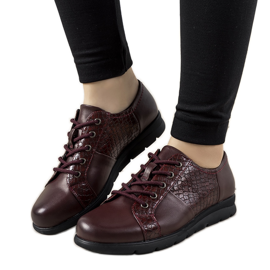 Bemutatjuk a bordó Olmos női cipőket a vörös luxus árnyalatában, amely tökéletes kiegészítője lesz bármilyen stílusnak. A kiváló minőségű ökológiai bőrből készült cipők elegáns krokodilbőr betétekkel tűnnek ki, amelyek egyedi karaktert adnak.