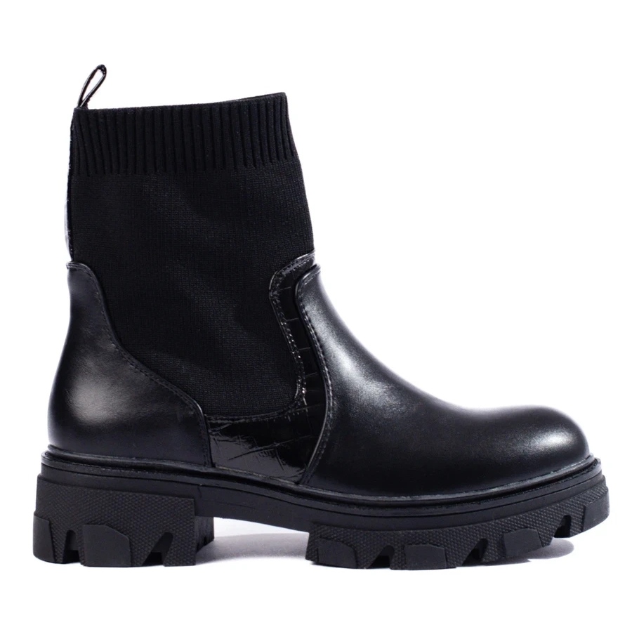 Elegáns, csúszás -A női csizmában univerzális fekete, ökológiai bőrből és textil anyagokból készült. Tökéletes az őszi/téli szezonhoz - Alkalmi vágás mind a városi, mind a mindennapi stílusban működik.