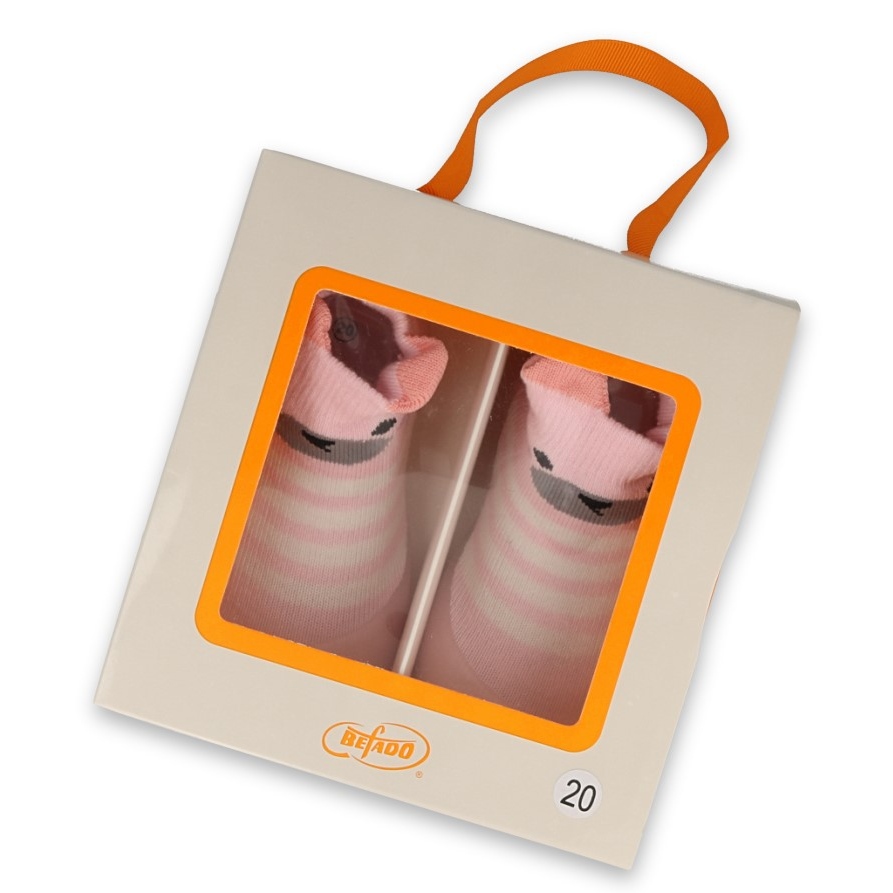 A Befado bébijárók környezetbarátak - TPE-ből készült talpuk nem csak a legfontosabb, kis felhasználók számára biztonságos, de újrahasznosítható is. A zokni vicces állatmotívuma még kellemesebbé teszi viseletüket, kiemelve a gyerekek lépéseinek örömteli jellegét.
