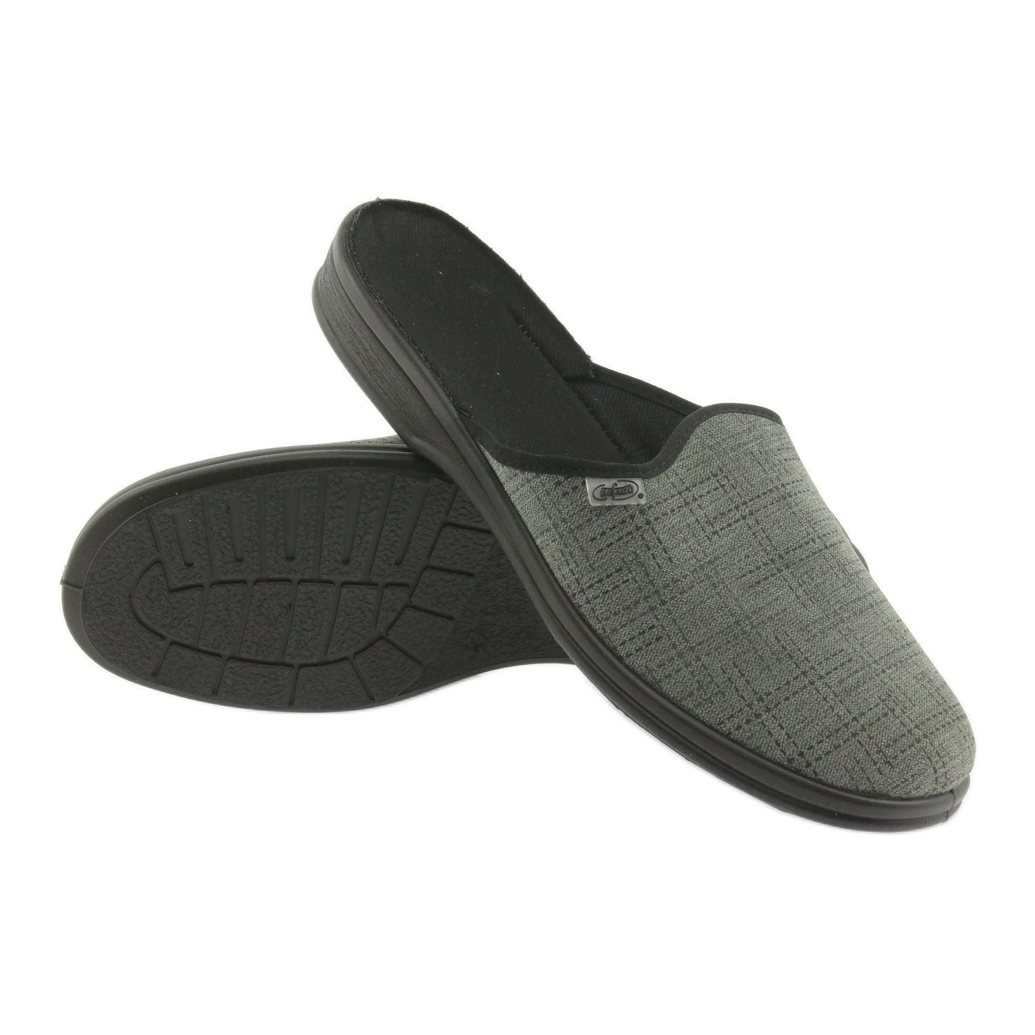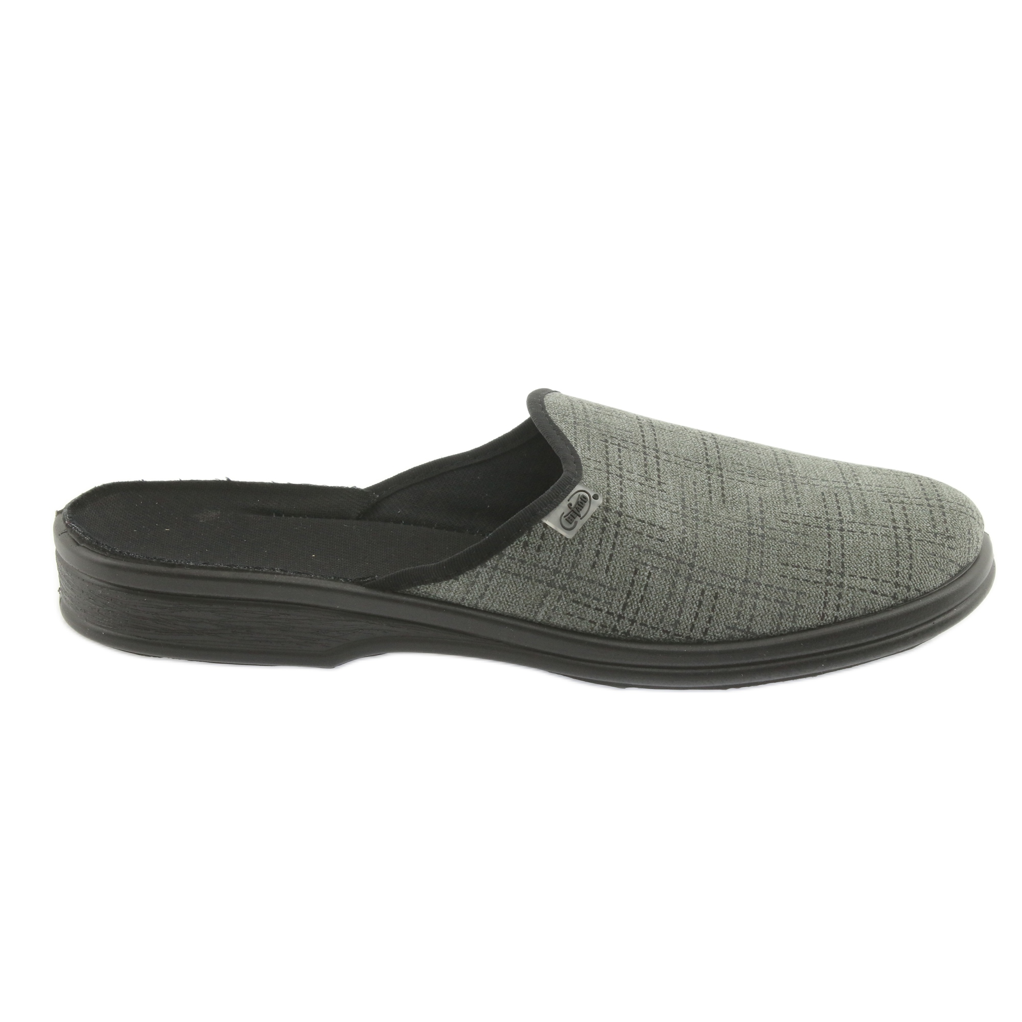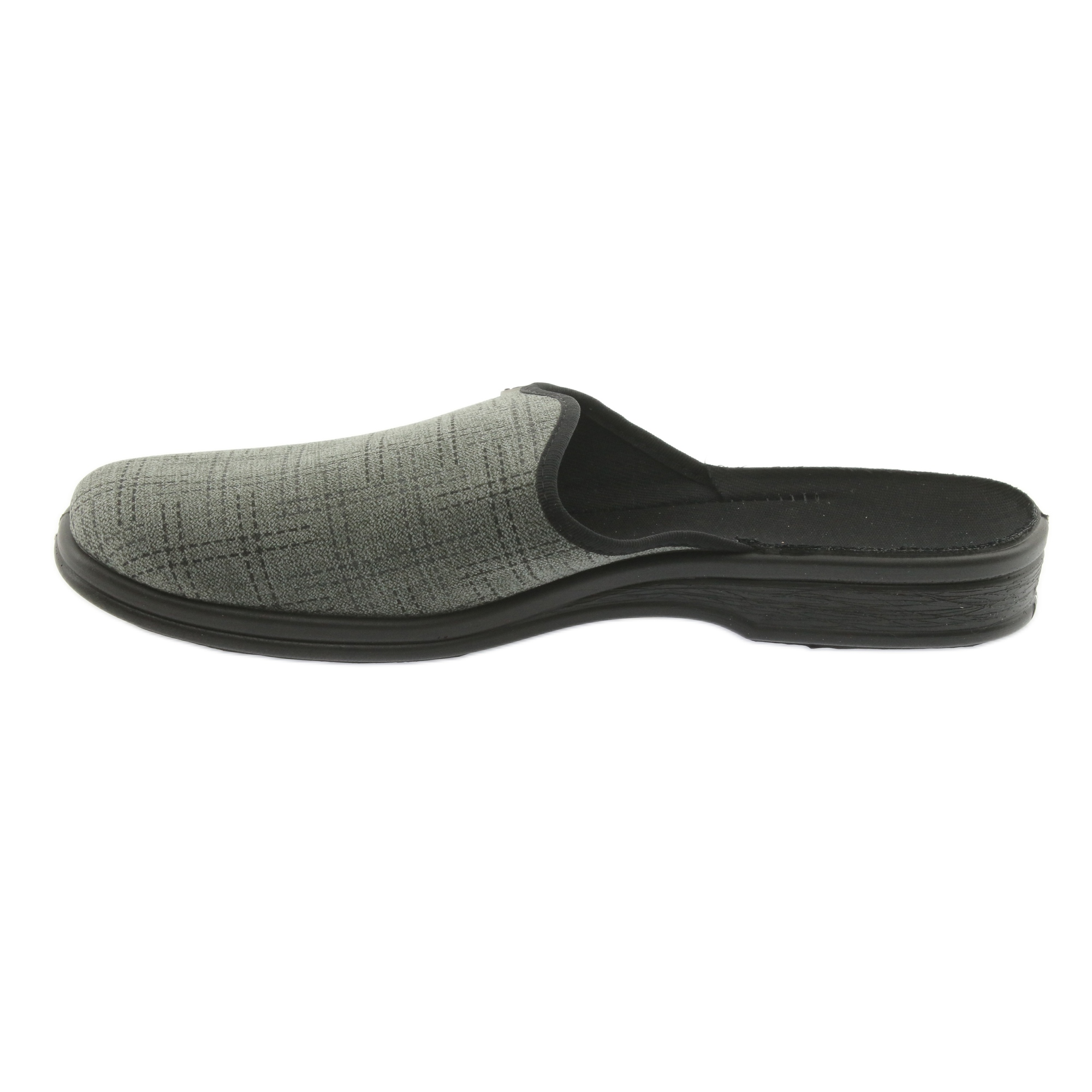 Befado PU 089M410 - Férfi papucsok, amelyek egy nehéz nap után élvezetesebbé teszik a többit. Lágy, természetes és lélegző szövetekből készülnek, és a lábak frissességét biztosítják és korlátozzák a túlzott izzadást. A könnyű, rugalmas talp, anatómiai profilja elnyomja a mikrohorát, és kényelmet érez a ház körüli minden lépésnél. A klasszikus, fekete kockás minta miatt a papucs szép és univerzálisnak tűnik.