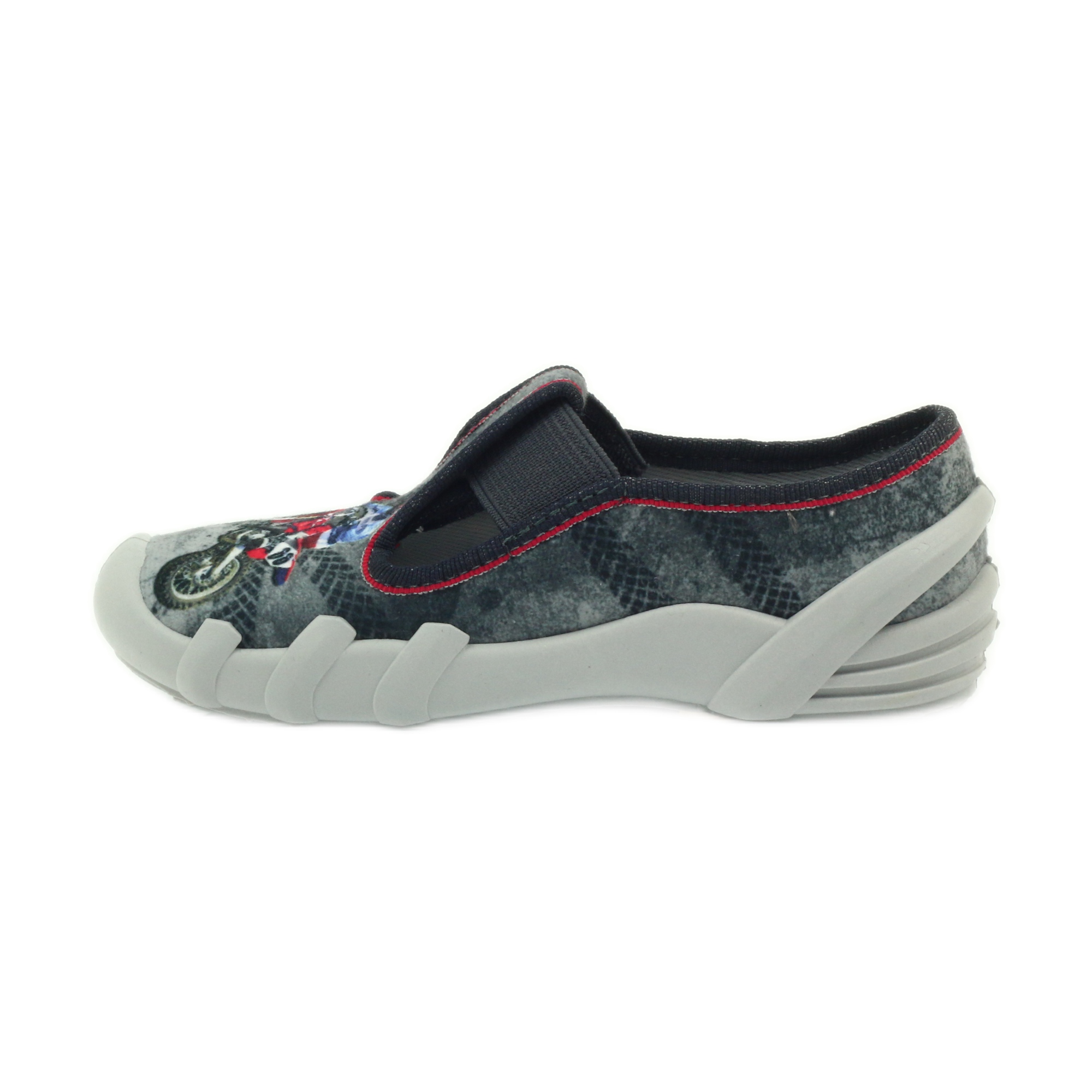 A Befado 290X166 gyermekpapucs tökéletes választás a kényelmet és stílust értékelő kis felfedezők számára. Ezek az egyedi szürke tornacipők, piros díszítéssel és motoros folttal az elején, minden kisfiúnak igazi játékbajnoknak érezheti magát.