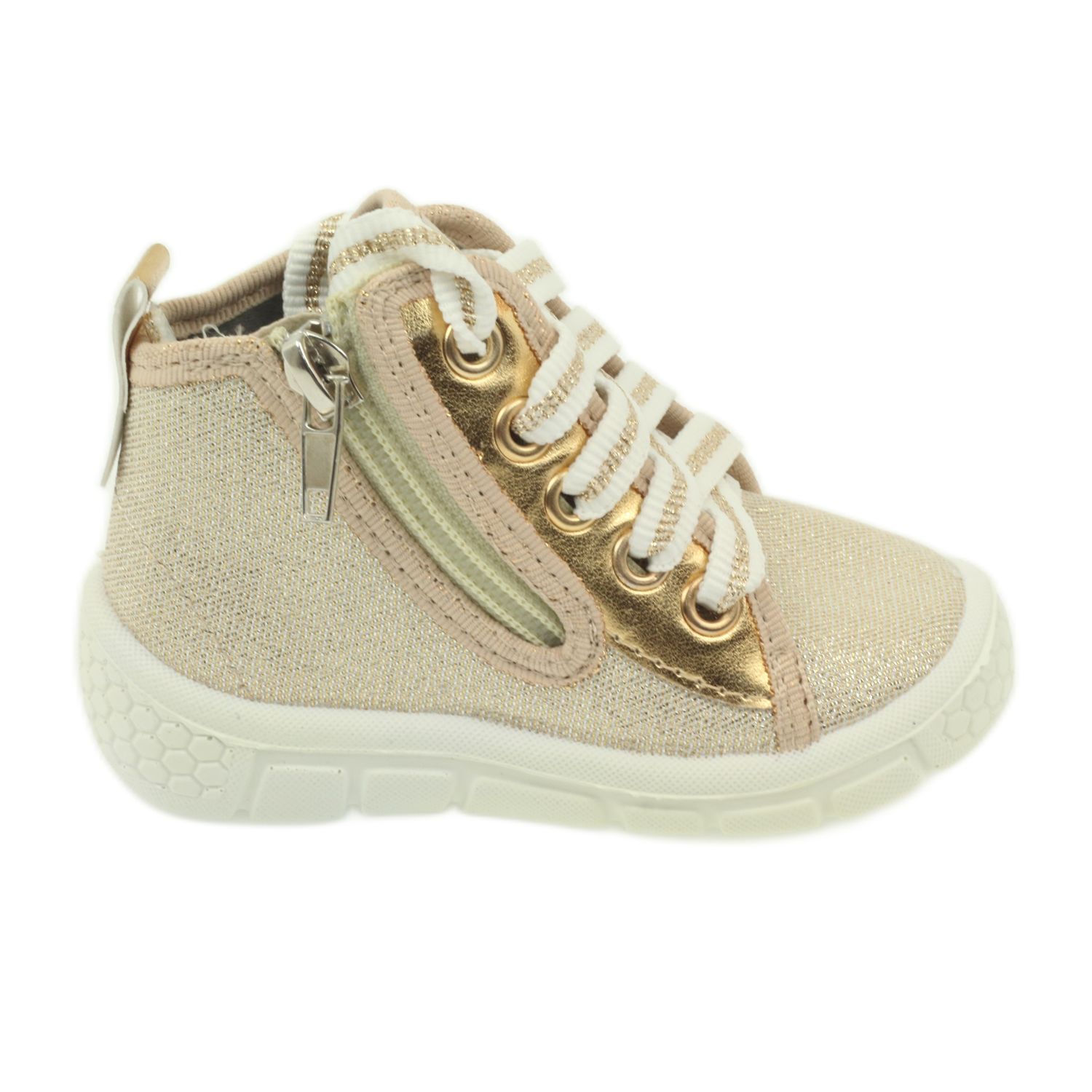 A termogumiból készült talp rugalmas és profilozott, amely alkalmazkodik a gyermek lábának természetes formájához. A széles orr és a magas orr védi a cipőt a kopástól, a csúszásmentes felület pedig biztonságot nyújt játék közben.