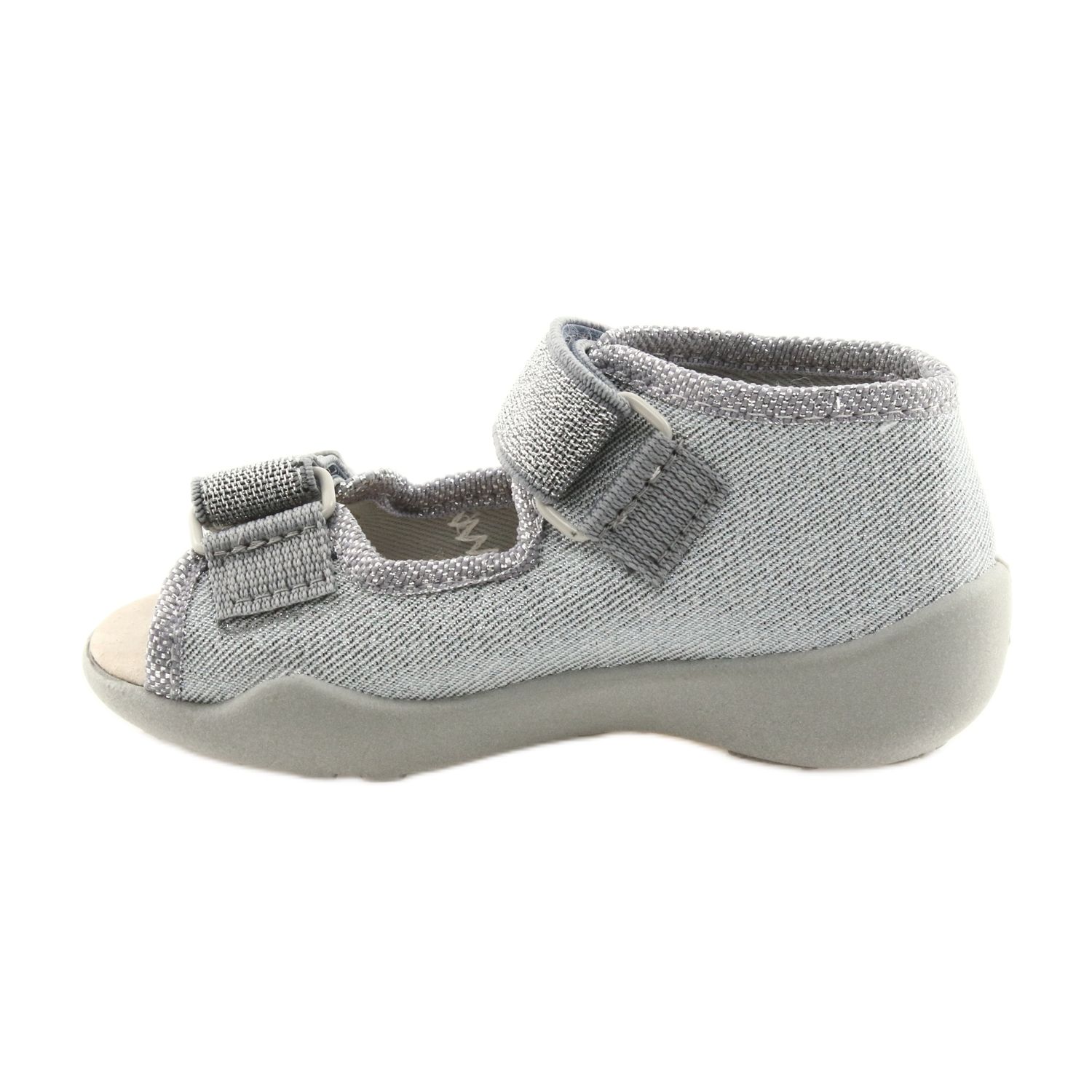 A Befado 342P002 ezüstszürke árnyalatú gyerekszandál tökéletes választás a meleg, napsütéses napokra a kicsi lábaknak. Könnyű és légies pamutszövetből készült felsőrészük optimális higiéniát és viselési kényelmet biztosít. A lélegző talpnak köszönhetően a gyerkőc lábai kiválóan szellőznek, ami jelentősen növeli a használat kényelmét.