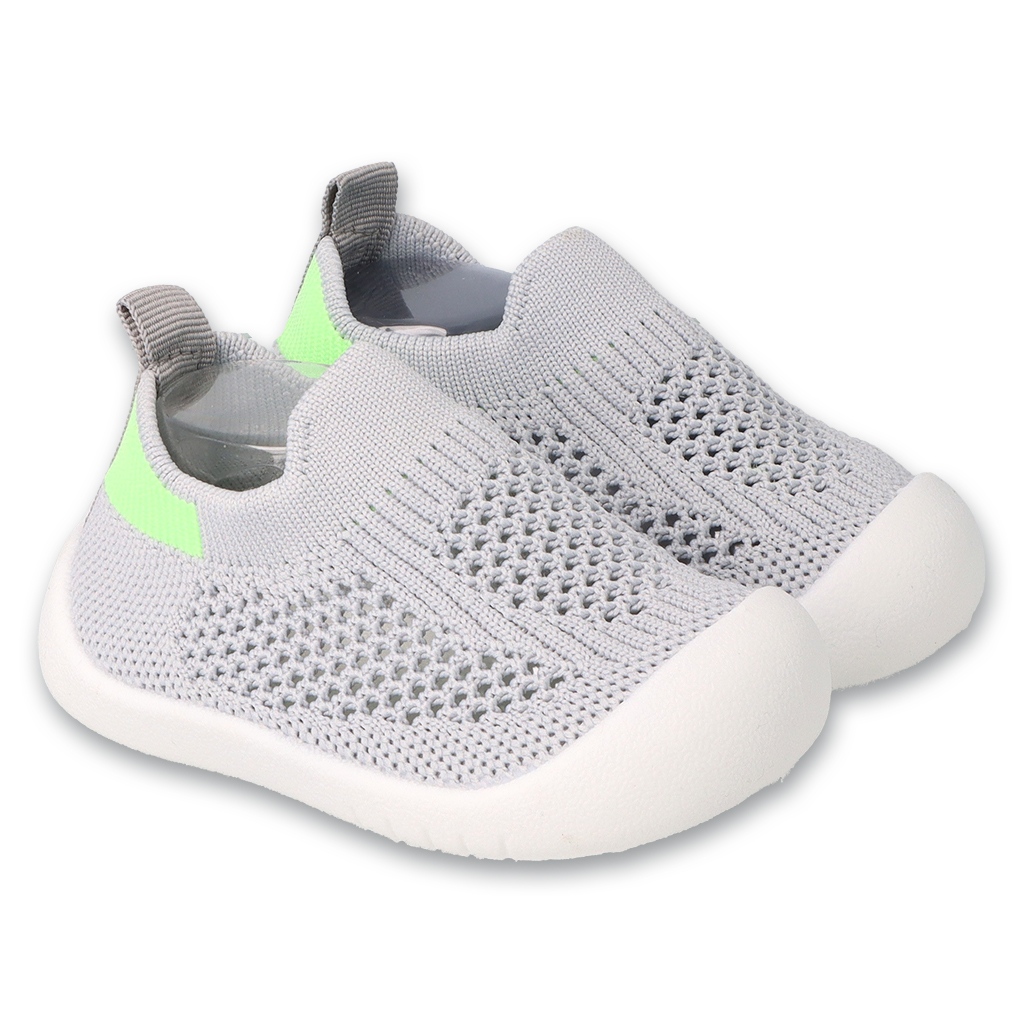 Ezeknek a babasétálóknak a rugalmas "zokni" felépítése a puhaság és a tartás egyedülálló kombinációját kínálja, a szövött állatmotívum pedig aranyos és vidám karaktert kölcsönöz nekik, amely biztosan tetszeni fog a kis felhasználóknak és szüleiknek egyaránt. A finom szürke további zöld ékezetekkel kombinálva egy univerzális szín, amely sokféle gyermekszekrényhez illik, így fiúk és lányok számára is megfelelő választás.