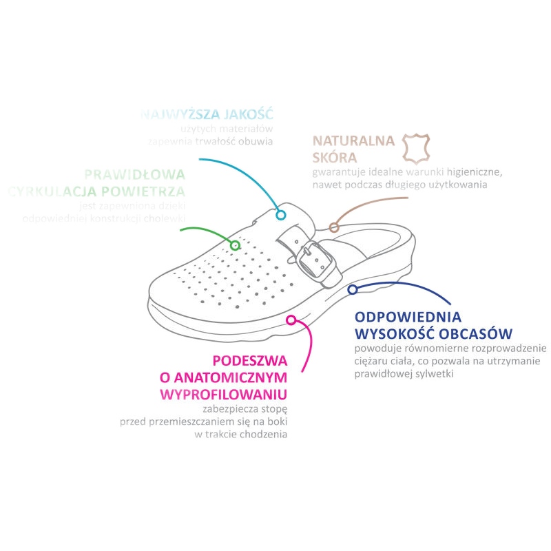 A Befado 157D005 megelőző papucsok kiváló választás azoknak a nőknek, akik értékelik a kényelmet és a láb egészségét. Ezeket a Dr Orto Med termékcsaládból származó fehér papucsokat olyan emberek számára tervezték, akik sok órát töltenek a lábukon, különösen, ha az egészségügyi iparban dolgoznak. A természetes bőrből készült, mind a külső anyag, mind a talpbetét nem csak kényelmet, hanem megfelelő tartást is biztosít a lábnak.