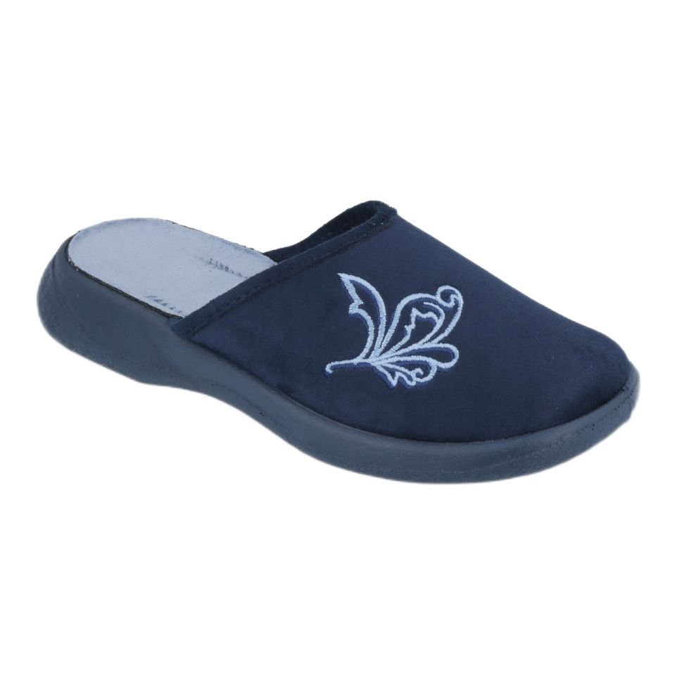 Fedezze fel a kényelmet és a stílust otthoni kényelmében a Befado 019D095 sötétkék és kék papucsoknak köszönhetően. Ezek az elegáns, természetes anyagokból készült papucsok kiváló szellőzést biztosítanak, ami egész nap megfelelő mikroklímát garantál lábának. Kivételes könnyedségük és kontúros, rugalmas fenekük olyan érzést kelt, mintha egy felhőn járnál.