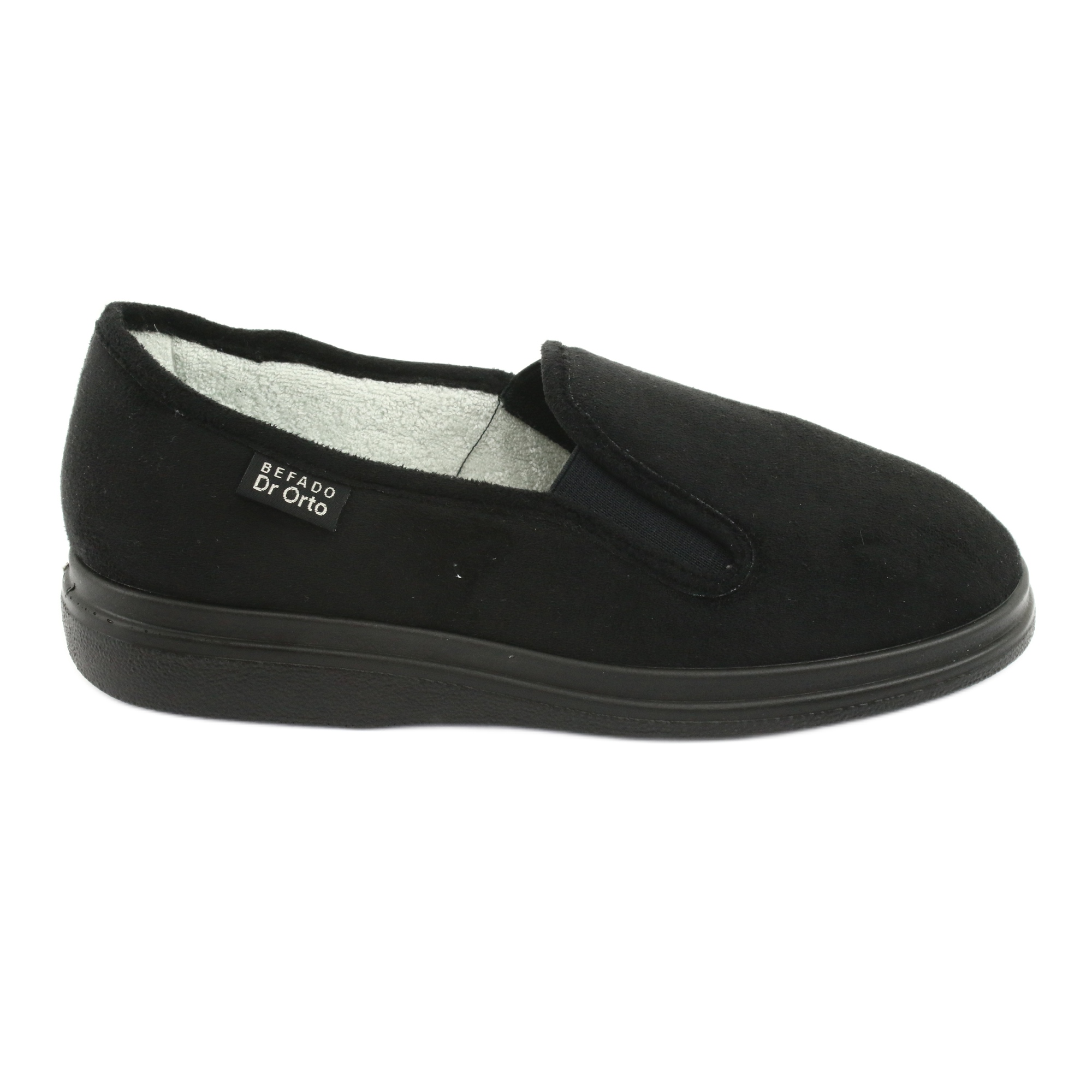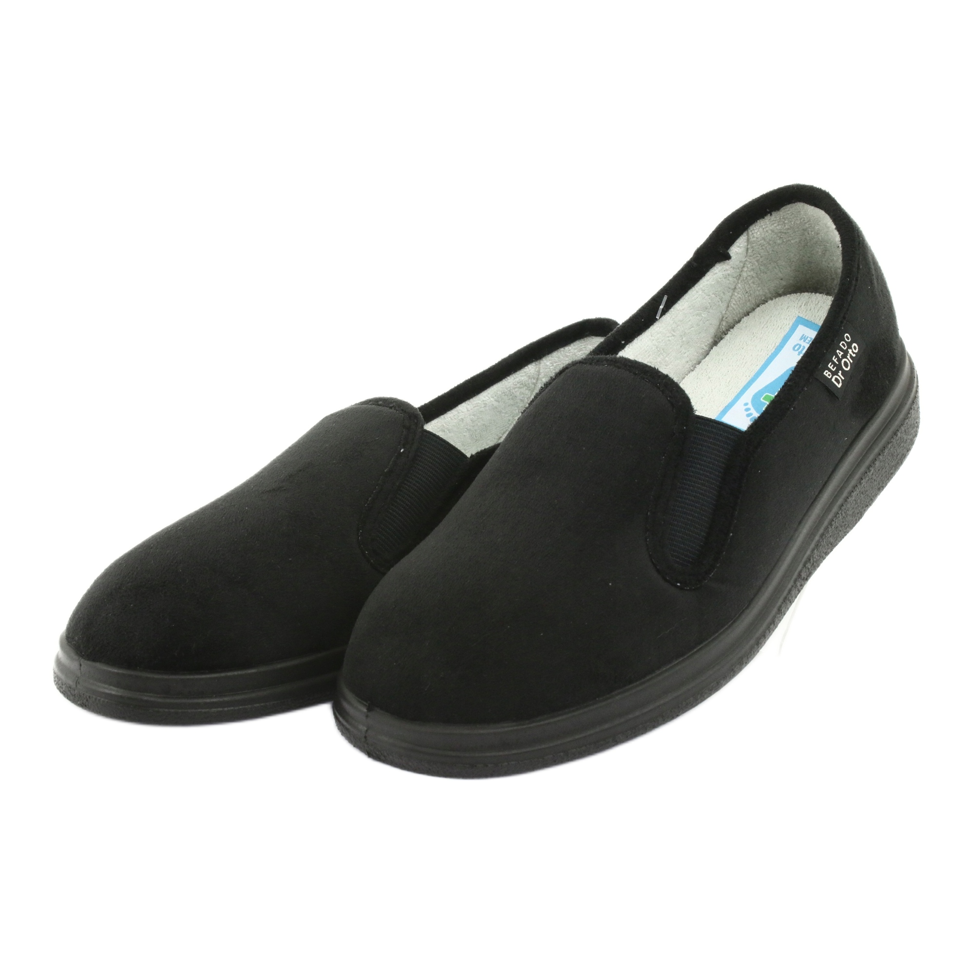Befado 991D002 - Könnyű, kényelmes női papucs, amelyet érzékenyek, és maximális kényelmet igényelnek. A magas zsíros modell széles és magas orrot biztosít, köszönhetően az ujjak szabadon vannak elrendezve, és a lábbeli még duzzadó lábakkal sem tömörít. A cipő belsejében lévő varrások és ízületek számát minimalizálták, ami csökkenti a kopás és az irritáció kockázatát - ez a megoldás a diabéteszes lábú emberek számára is ajánlott.