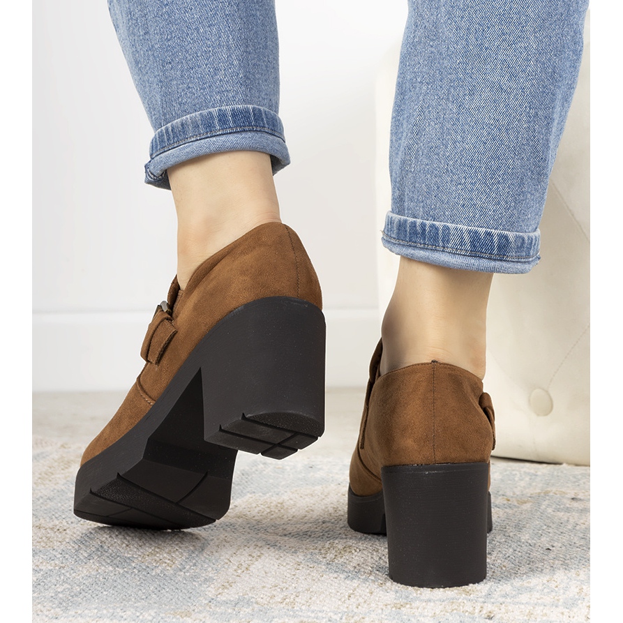 A sötét bézs árnyalatú, ökológiai velúr bőrből készült felsőrész nemcsak divatos, hanem strapabíró is, egész napos viselési kényelmet biztosít. A rugalmas betétek rendkívül egyszerűvé teszik a cipő felhelyezését, a cipő pedig tökéletesen illeszkedik a lábfejhez, így biztosítva a kényelmes használatot.